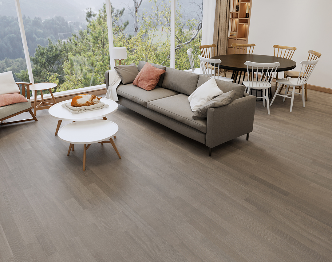 淺灰色的三拼花白蠟?zāi)?正如那美景,誕生在廣闊的天地、沐著四季的風(fēng),絲絲紋理細(xì)膩如勾勒,仿佛把家也變成了那童話般的世界。