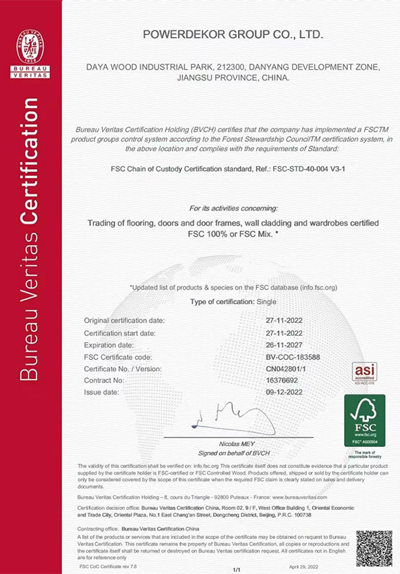 FSC森林認證證書
