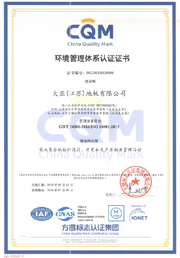 環(huán)境管理體系認證證書