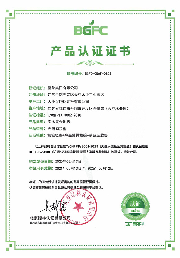 無醛產品認證證書