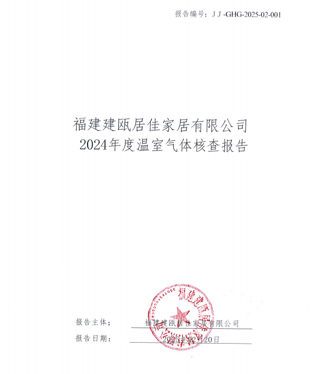 福建建甌居佳家居有限公司發(fā)布《產(chǎn)品碳足跡核查報告》和《2024年度溫室氣體核查報告》